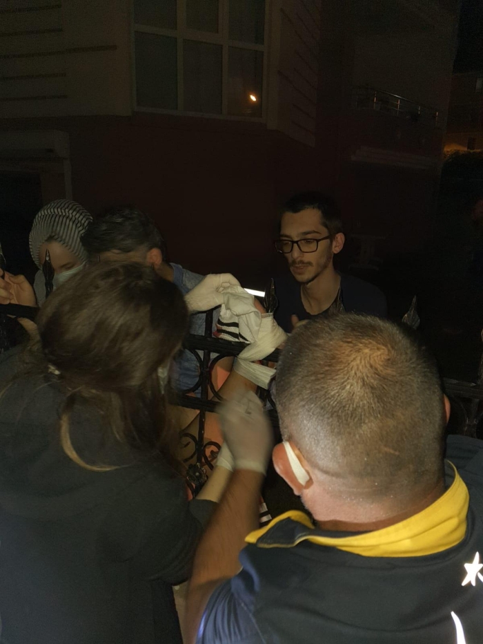 Olay, saat 01.00 sıralarında Gölcük ilçesi Değirmendere Topçular Mahallesi Saraybosna Caddesi'nde meydana geldi. Atakan K. evine doğru giderken sokak köpeklerinin saldırısına uğradı. Köpeklerden kaçan Atakan K. evinin bahçe duvarındaki korkulukların üzerinden atlamaya çalışırken, korkuluğun demiri sağ bacağına saplandı. Sesleri duyup dışarı çıkan komşuları, Atakan K.'yi görüp 112 Acil'e haber verdi. İhbar üzerine adrese itfaiye ve sağlık ekibi sevk edildi. İtfaiye ekibi demiri keserek Atakan K.'yi kurtardı. Sağlık ekibinin ilk müdahalesinin ardından Gölcük Necati Çelik Devlet Hastanesi'ne kaldırılan Atakan K.'nin bacağına saplanan demir çıkarıldı. Atakan K.'nin tedavisi devam ediyor.