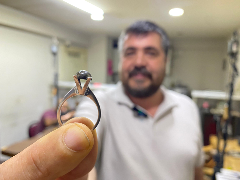 Yıllardır pırlanta işlediğini anlatan Yılmaz, "İlk defa meteor taşını işledim. Kesmesi oldukça zordu, zorlandığımız alanlar oldu ama emeğimize değdi. Eşi olmayan bir yüzük yaptık." diye konuştu.