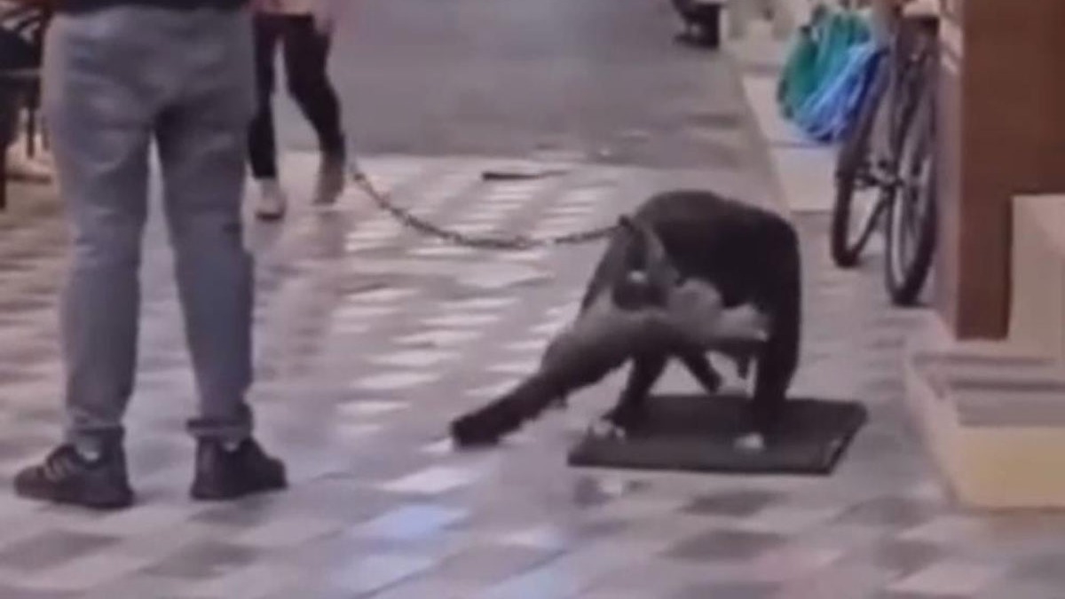 Türkiye'de üretimi, satışı ve el değiştirmesi yasaklanan türler arasında yer alan Pitbull cinsi köpeğini İzmir Caddesi'nde tasmayla gezdiren Muzaffer G (33), sahipsiz bir kediye saldıran köpeğini engellemedi.