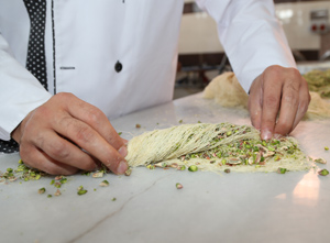 Kızaran kadayıf, özenle fıstık veya cevizle süslenerek tadına doyulmaz lezzetiyle satışa sunuluyor.