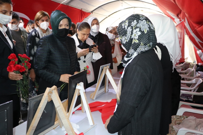 Ailelerle görüşen Şentop onlara karanfil verdi.