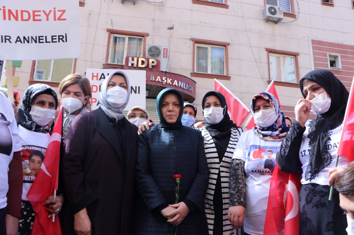 Sabriye Şentop, beraberinde AK Parti Diyarbakır Milletvekili Oya Eronat ve bazı milletvekillerinin eşleri ile dağa kaçırılan çocuklarına kavuşmak için HDP İl Başkanlığı binası önünde oturma eylemi yapan Diyarbakır annelerine destek ziyaretinde bulundu.
