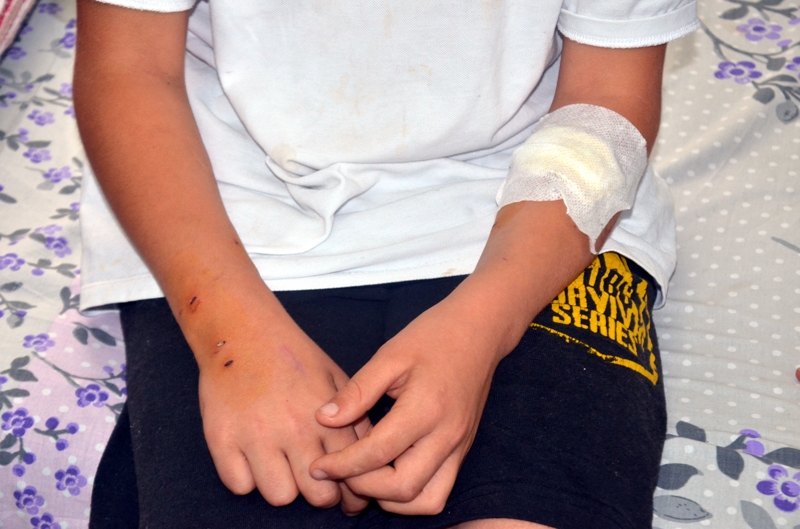 Çocuklardan Umut Üveys Söylemez, kardeşi Mehmet Salih ile bahçede oynarken köpeklerin saldırısına uğradıklarını söyledi.