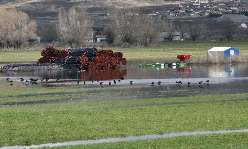 Kentte etkili yağışların ardından bazı ilçelerdeki tarım arazilerinde gölü andıran su birikintileri oluştu.