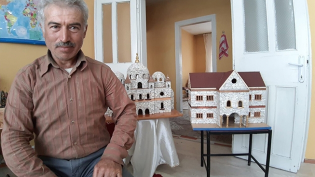 Malatya’nın Battalgazi ilçesinde yaşayan 55 yaşındaki inşaat işçisi Ramazan Otlu, 35 yıldır hobi olarak taştan maketler yapıyor.