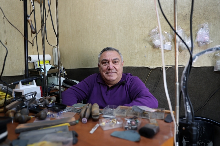 "Başarılı bir öğrenciydim ama ilkokulu bitirdikten sonra imkansızlıktan okuyamadık. Annemin, ustamı yolda gördüğü zaman, 'Oğlumu yanınıza alır mısınız? ' demesinin ardından bu dükkanda çırak olarak işe başladım. 1972'de babam rahmetli oldu. Allah benim babamı aldı, yerine başka bir baba verdi. Ustamı verdi. Hakikaten hem ustamdı hem de babamdı. Ustam Harutyun Mathatyan 2 ay önce rahmetli oldu. 12 yaşında buraya girdik ve 2 sene çıraklık yaptım. Ondan sonra tabii ki yavaş yavaş tezgaha oturmaya başladık. Bizim zamanımızda motorlar falan çok azdı ve biz el matkabı çalışıyorduk. Ustalarımız bize motoru vermemişlerdi. Kalemle başta yuvalarımızı açmaya başladık. Çıraklık, kalfalık dönemimiz derken askere gidene kadar bu dükkandaydım. Askerliğimizi yaptık, kalktık, geldik. Ondan sonra ustam yurt dışına gitti ve bu dükkan bana kaldı."