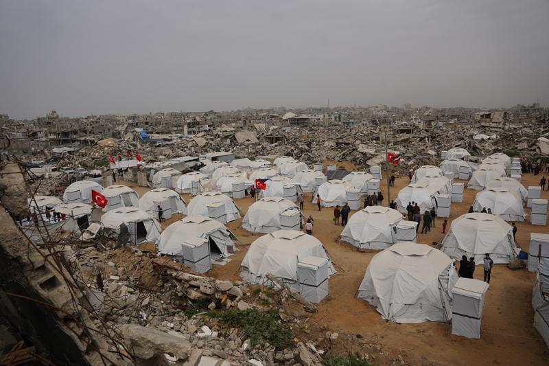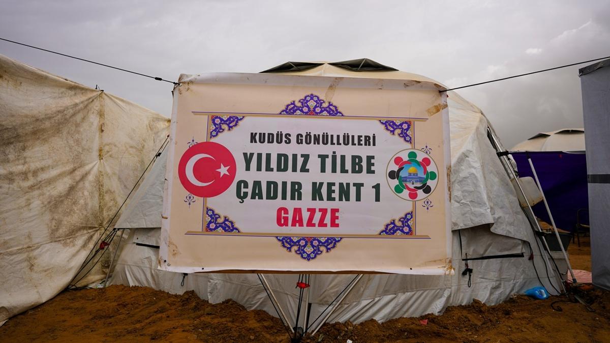 İsrail saldırıları nedeniyle yerinden edilen Filistinlileri sığındığı "Yıldız Tilbe Çadır Kenti" bugün düzenlenen törenle açıldı.