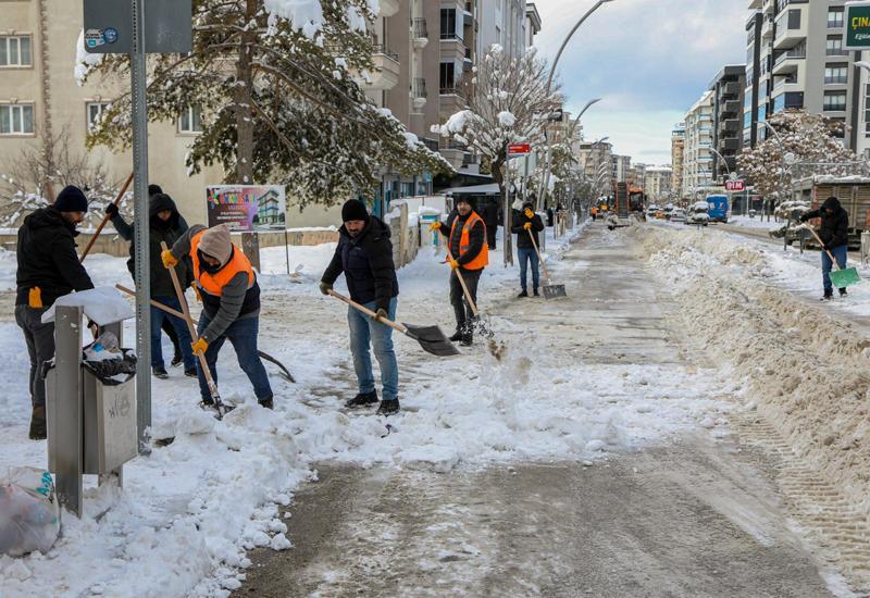 Ana arterler başta olmak üzere cadde, sokak ve merdivenlerde kar temizleme ve tuzlama çalışması yapan ekipler, kar yığınlarını şehir dışına taşıyor.
