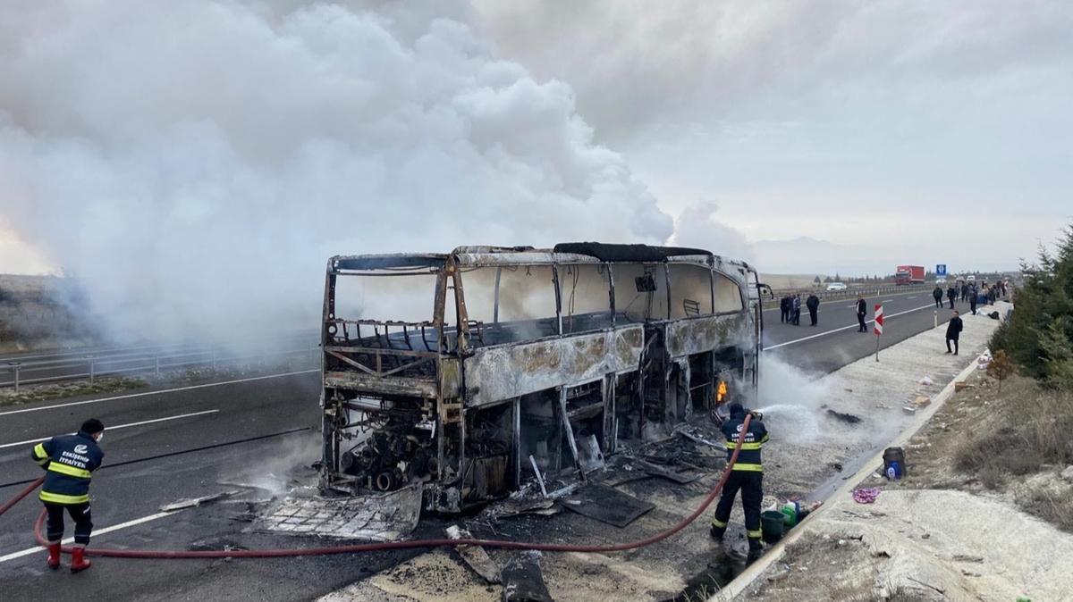 Otobüste 25 yolcu ve 3 personelin bulunduğu, yangında yaralanan olmadığı öğrenildi.