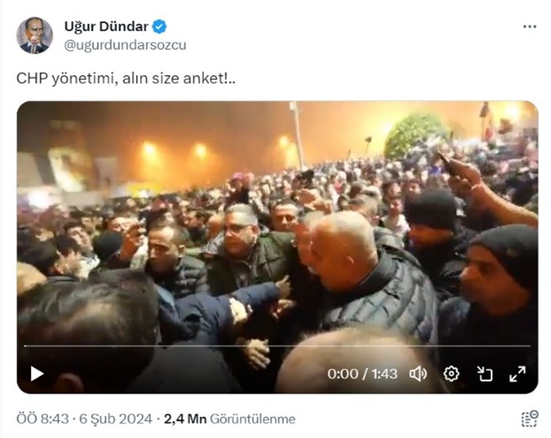 "CHP yönetimi, alın size anket!.." diye paylaştığı görüntüde Hatay Büyükşehir Belediye Başkanı Lütfü Savaş, depremzedeler tarafından protesto ediliyor. CHP Genel Başkanı Özgür Özel ve Lütfü Savaş zor anlar yaşıyor. Peki neden alın size anket diye yazmış derseniz, hemen söyleyelim. Özel, CHP kongresinde ön seçim yapacağız diye namus sözü verdi. Ama sözünü tutmadı. Sonra anket yapacağız ona göre karar vereceğiz dedi. Anketten de Hatay'da Lütfü Savaş'ın çıktığını söyleyip tekrar aday gösterdi. Açık söylemek gerekirse CHP'li gazeteciler acı çekiyor. Ben söylediklerini buraya yazayım kararı siz verin.