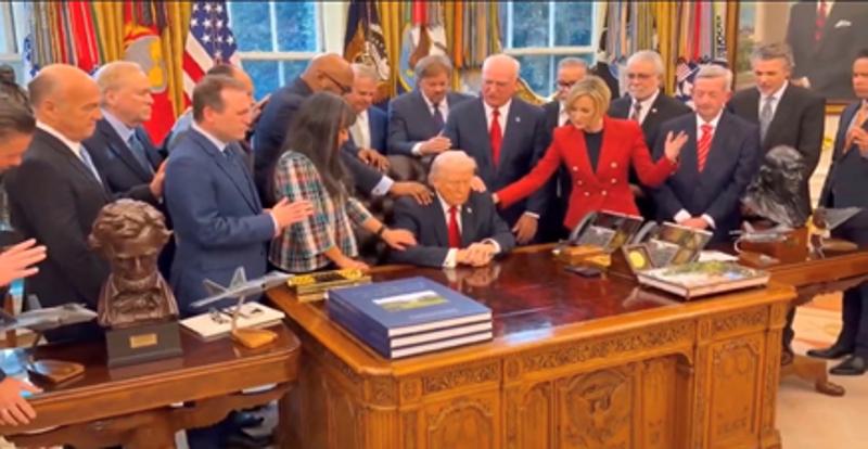 Geçtiğimiz gün Beyaz Saray'da Oval Ofis'te 20 kadar Evanjelist din görevlisi, ABD Başkanı Trump'a dokunarak dua etti. Ülkenin dört bir yanından getirilen papazlar Trump'ı kutsadı.