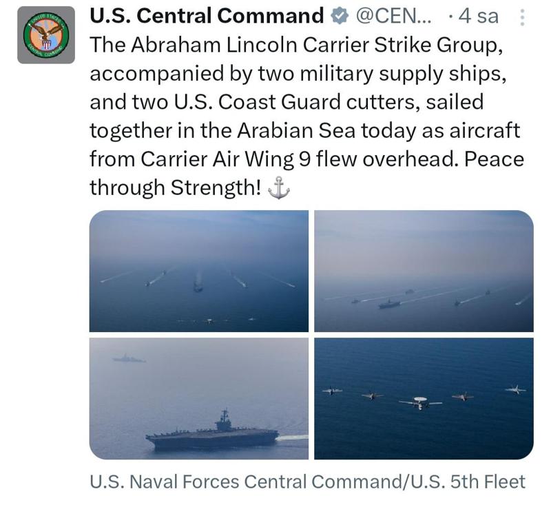 Aynı CENTCOM'un Umman Körfezi'ndeki Amerika Birleşik Devletleri filosunu paylaşması ilavesiyle...