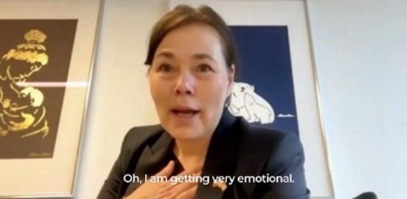 Grönland Dışişleri Bakanı Vivian Motzfeldt canlı yayında duygusallaşarak gözyaşlarını tutamıyor açıklama yaparken.